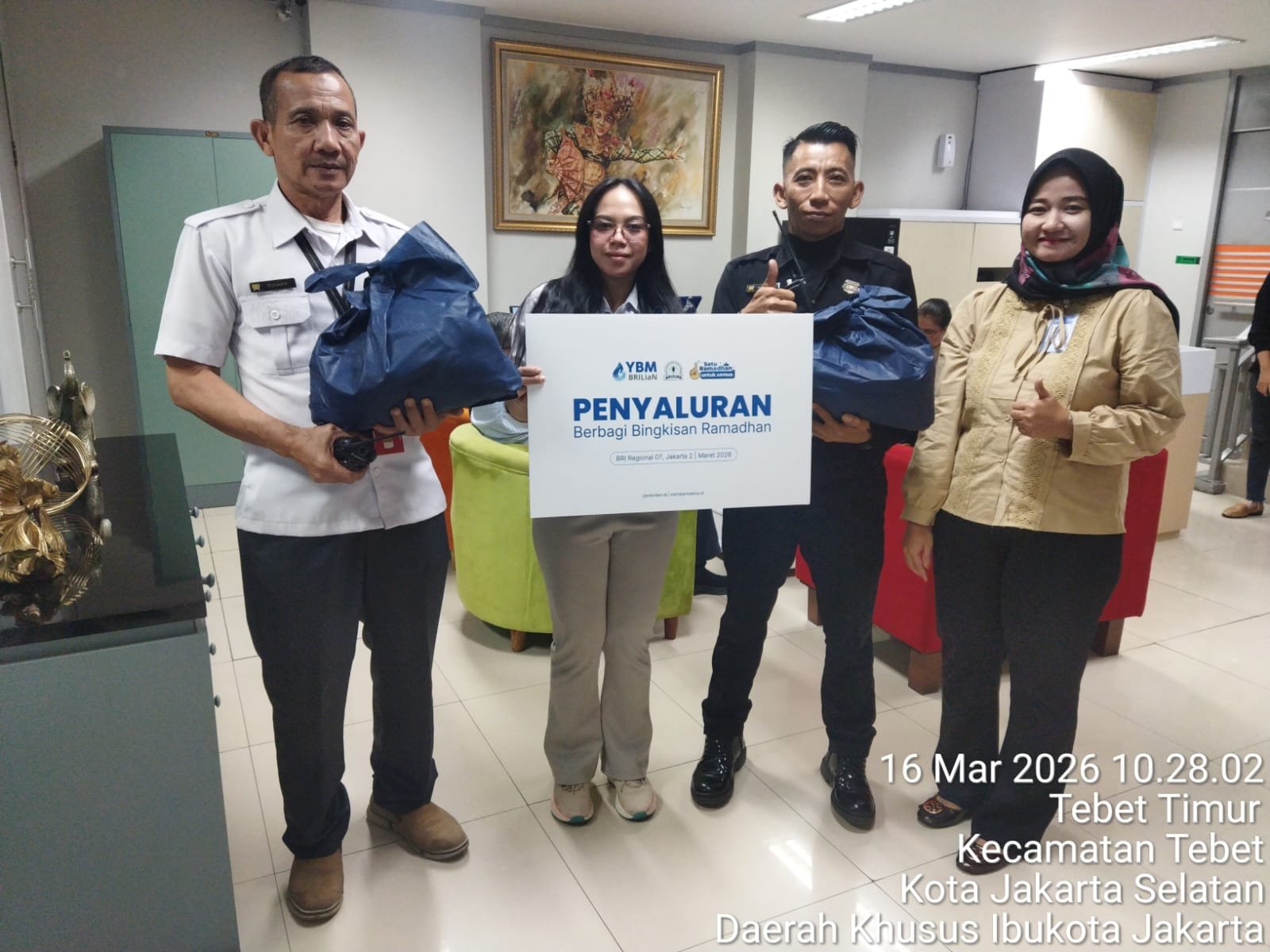 Kali ini penyaluran bingkisan ramadan 1447 Hijirah dilakukan oleh Manager Operasional BRI BO Pancoran, Desiyanto Wicaksono. Adapun bingkisan ramadan diberikan ke panti asuhan, duafa serta masyarakat yang membutuhkan di lingkungan sekitar kantor BRI BO Pancoran.